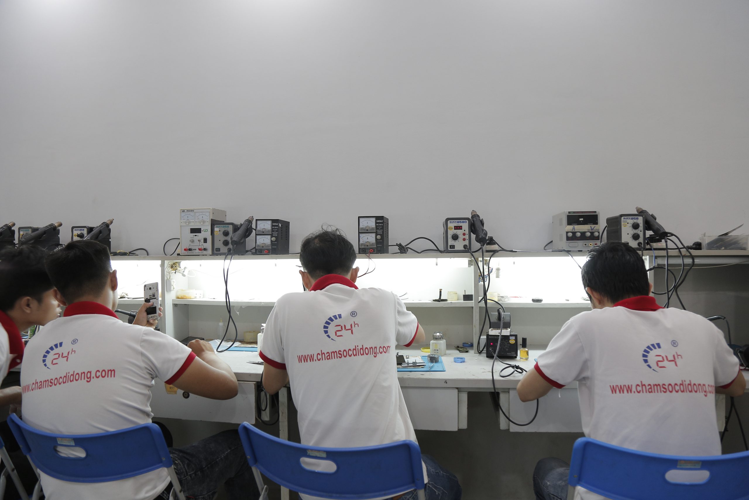 Học tại Trung Tâm Dạy Nghề Sửa Chữa Điện Thoại và Laptop 24h không giống với việc học trên sách vở. Các phòng thực hành được trang bị công cụ chuyên dụng và thiết bị đúng chuẩn kỹ thuật sửa chữa thật, giúp học viên làm quen với môi trường sửa chữa chuyên nghiệp ngay từ đầu – từ bộ kit tháo lắp, đồng hồ đo điện, máy tháo ép màn hình đến các thiết bị kiểm tra phần mềm và phần cứng. Nhờ vậy, bạn không chỉ học lý thuyết mà còn rèn luyện tay nghề ngay trên thiết bị thật, điều này là yếu tố quyết định giúp bạn tự tin hơn khi bước vào nghề.